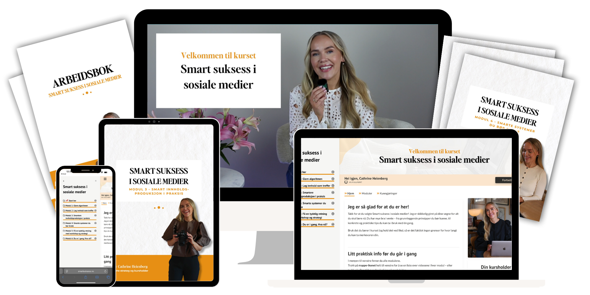 Videoer. Karuseller. Tekster. Du lærer hvordan du lager det, redigerer det, og får det til å se profesjonelt ut. Uten at det tar hele dagen.